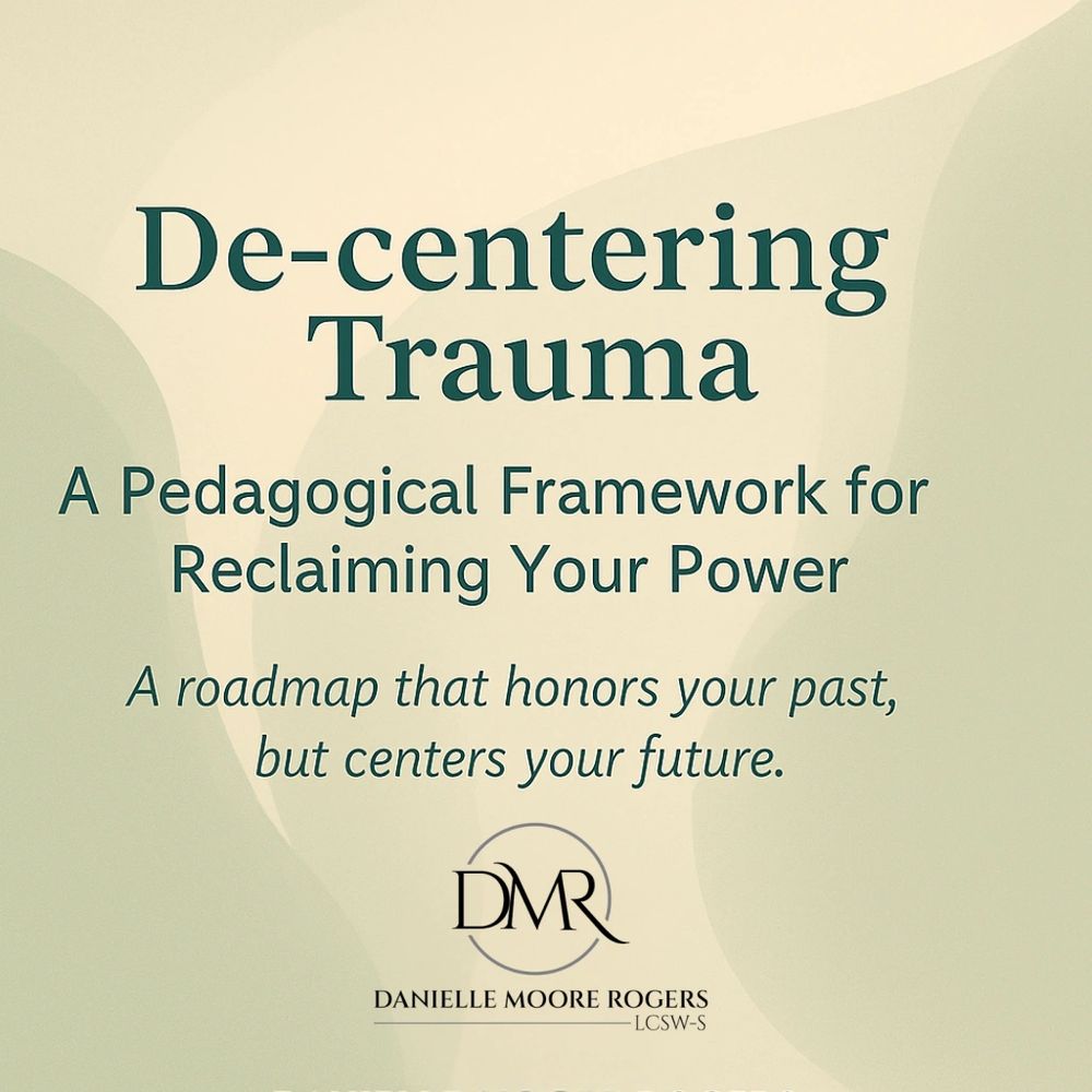 De-Centering Trauma: A Pedagogical Framework for Reclaiming Your Power is a roadmap that honors your past, but centers your future. The purpose of the framework and all associated physical and digital products is to empower individuals who have experienced trauma by offering a forward-facing, healing-centered products that acknowledges trauma without allowing it to define one’s identity or limit one’s potential. The De-Centering Trauma framework and companion products are the intellectual property of Danielle Moore-Rogers, LCSW-S